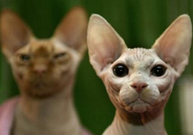 加拿大无毛猫,英文名:Canadian Hairless,别名:斯芬克斯猫,在1966年,加拿大安大略省多伦多市养猫爱好者从无毛的猫仔中,经过不断近选育培养出了一种没有毛的猫品种,专门为对猫毛过敏的爱猫者培育。它们无毛的性状是由自然的基因突变产生,除了在耳、口、鼻、尾前段、脚等部位有些胎毛外,全身几乎无毛,皮肤有褶皱但富有弹性。