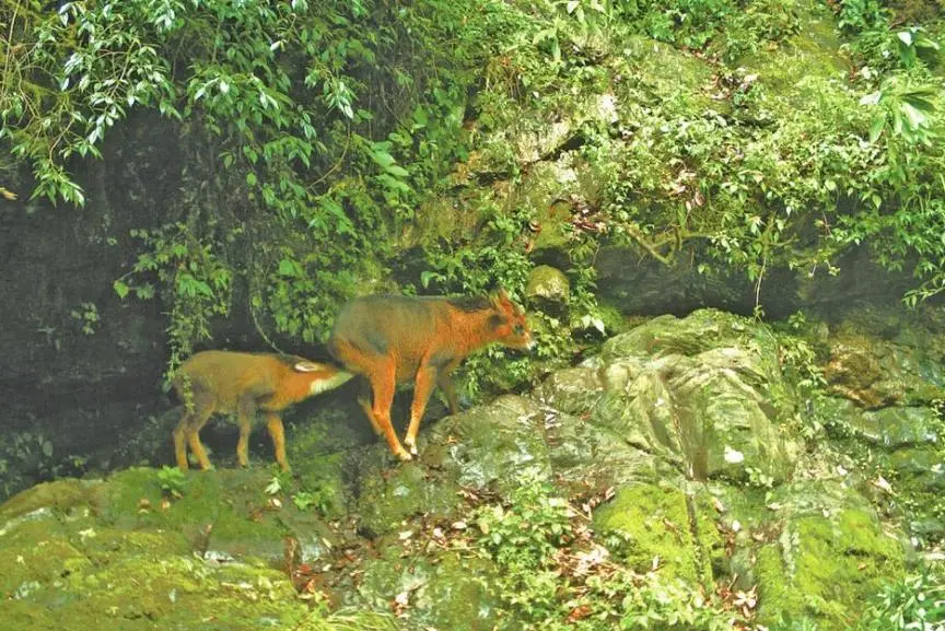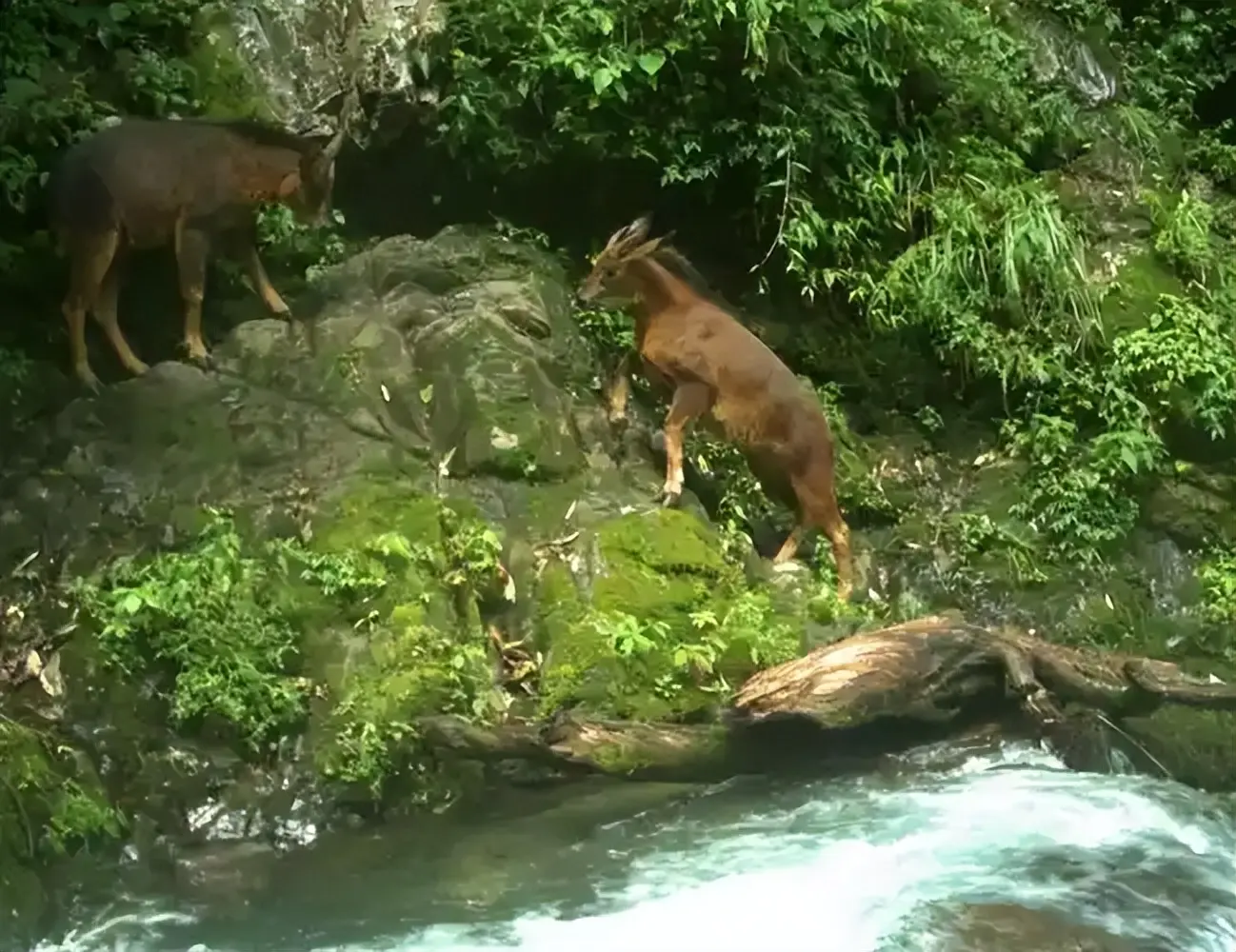 2019年,人们还曾在保护区内拍摄到过更多的红鬣羚,更惊喜的是,有红外相机捕捉到了红鬣羚哺乳的珍贵画面。