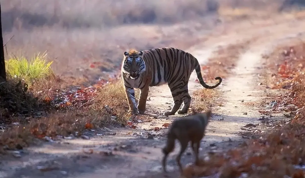 狗与老虎的栖息疆域几乎毫无交集:前者活跃在人类聚居区域,后者则盘踞在环境恶劣的荒野丛林。受这种地理阻隔的影响,家养犬或许终其一生都不会与老虎有实际接触。