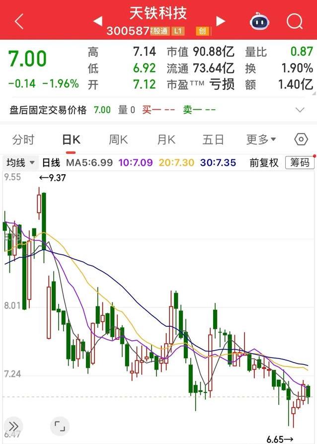 再说另一家天铁科技。这家公司主要做橡胶制品,特别是轨道交通用的减振降噪材料,听着挺专业。股价前阵子回调了三个多月,现在才七块钱左右。昨天大盘和很多股票都在涨,它偏偏还跌了两个点,抄底的人心里肯定在想:这回总该反弹了吧?结果晚上公告来了,控股股东兼实控人之一许吉锭被台州市公安局刑事拘留了。
