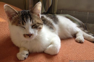 另外一种情况就是像黑白或橘白那样的,身体的某一个部分出现白色毛发的猫咪,这就是体内的白斑遗传因子在起作用。