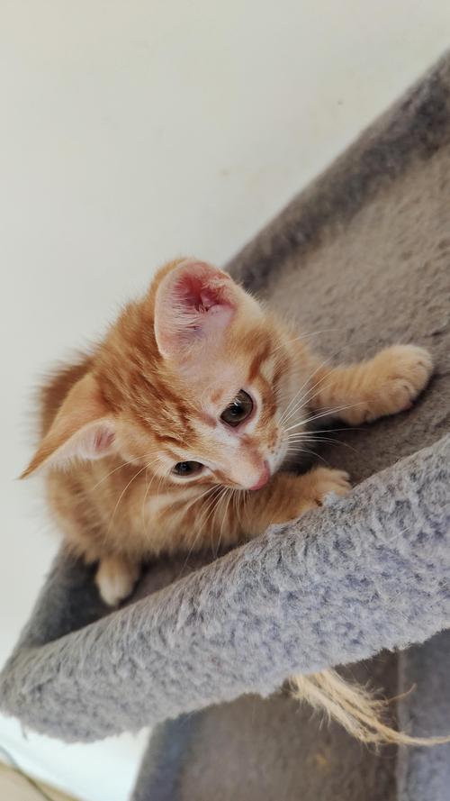 4、养小橘猫是需要给它清理毛发的,它的毛发一般不是太长,但是比较容易粘灰尘的,虽然它也会自己清理,但在背部的地方它是清理不到的,我们需要定期给它清理毛发,用梳子梳一梳就可以了,它比较小是不适合洗澡的。