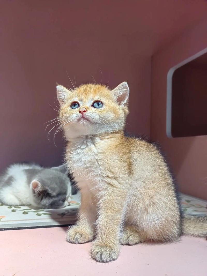 金色渐层系英短,性格大胆好奇,不怕生,非常温柔,不乱发脾气、更不会乱吵乱叫。