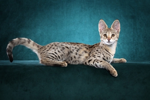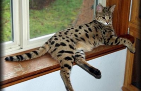 热带草原猫 ( 学名:Felis catus × Leptailurus serval ),英文名称Savannah cat所以又译作”萨凡纳猫“,“Savannah”的中文意思是“热带草原”。是由非洲薮猫 ( 父系 ) 与家猫 ( 母系 ) 杂交而成。体重约为8-15千克。