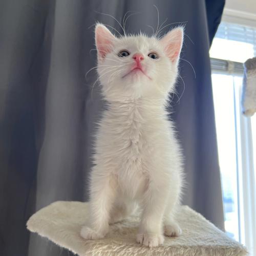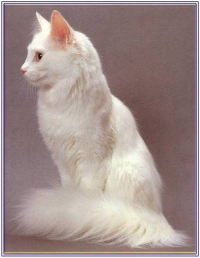 土耳其安哥拉猫身材修长、苗条,躯干和尾巴都很长,尾巴逐渐变细,背部起伏较大,四肢高而细,耳大,眼睛为杏仁状,呈蓝色、琥珀色或为鸳鸯眼,即两只眼睛分别为两种颜色。安哥拉猫,脸为较长的楔子形,体型苗条,躯干和尾巴也很长,尾巴逐渐变细。杏仁状的眼睛,呈蓝色、琉璃色或是鸳鸯眼。丝状被毛,柔软细腻;颈部、腹部和尾巴的软毛较丰厚。该猫没有内层绒毛,夏季脱毛极为显著,脱毛后像短毛猫一样,入冬后被毛迅速加厚,因而易于梳理。土耳其安哥拉猫最初只有白色,现在该猫毛色趋于多样化,有清一色的,红、蓝、黑、或带有条状斑纹,或有不同花色斑点,但是白色,是人们始终爱恋的颜色。安哥拉猫举止端庄,天性恬静热情,经常是一动不动地卧在房间里,给人一种小家碧玉之感。