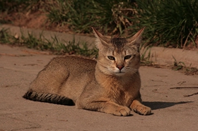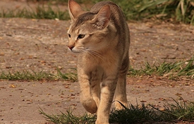 非洲狮子猫,一种有一对大又有穗的耳朵、长长四肢、短尾,大型和充满肌肉的猫种。