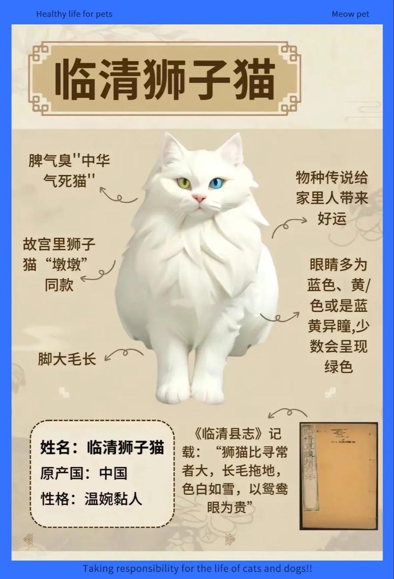 临清狮子猫的培育形成与伊斯兰教的传人和运河的开通有密切的关系;它是波斯猫(即所说的传统安哥拉猫)与鲁西狸猫的繁育而来的后代。