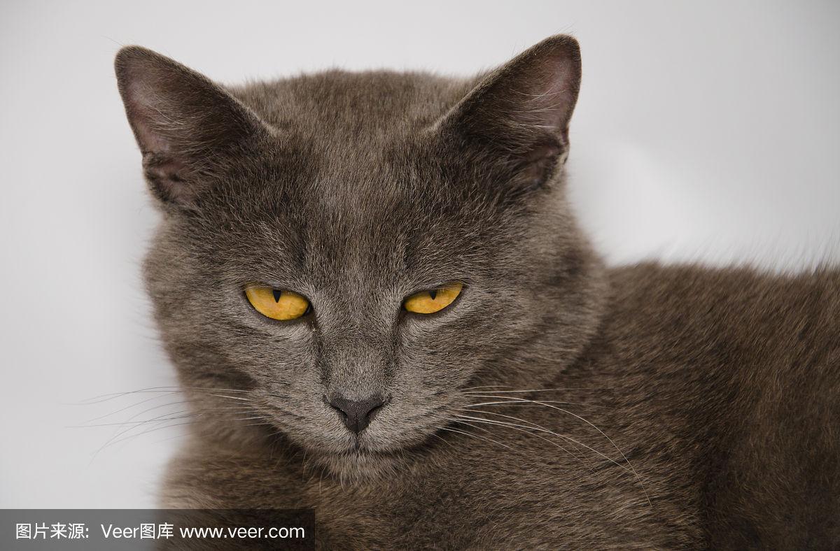 夏特尔猫,英文名称:Chartreux,,原产地位法国,擅长于捉老鼠。它体型较大,身体结实,微胖,成年夏特尔猫的体重可至7kg。
