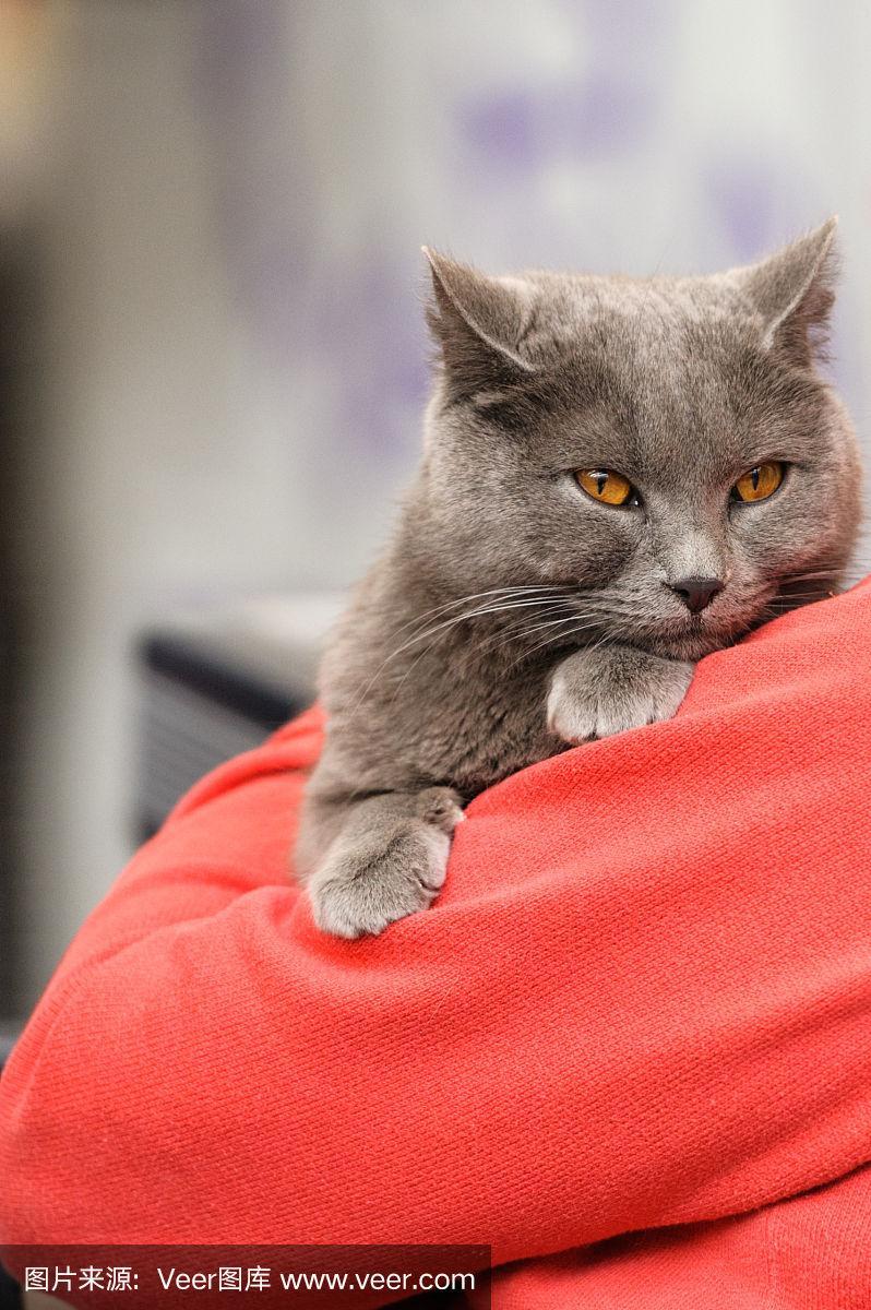 3、由胸部向腹部梳理:将猫咪抱起,呈人的姿势坐到腿上,从上往下梳理。猫咪的肚子比较敏感,铲屎官在进行梳毛时,一定要快速又准确。