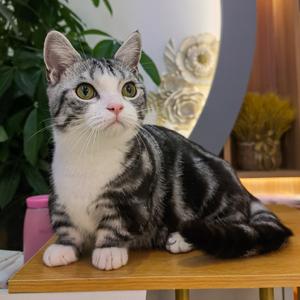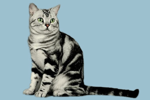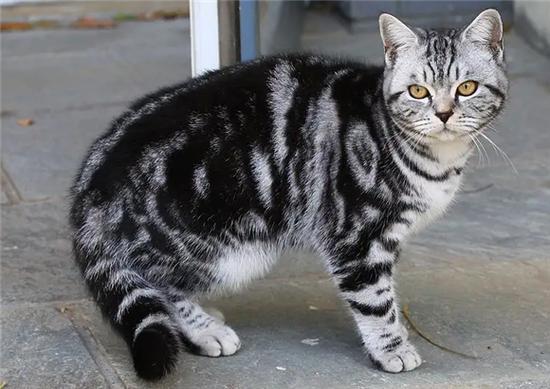 虎斑猫,原产美国。黄棕色的底色,夹有纯黑色的斑纹图案,且有一圈较浅的铜色呈环状包围。虎斑猫头部圆润,两耳间距较近,颈略短,肌肉发达。眼睛大而明亮,呈圆杏核状,颜色可以接受由黄色、金色至绿色,通常有眼线。鼻子是砖红色,有鼻线。毛型短而厚、质地生硬。个性独立、活泼、机警。捕鼠能力强。