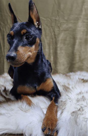 迷你杜宾是一种结构平衡、紧凑、结实、精密的短毛狗。它的外观自然、高傲、有活力且警惕。骏马式的步伐、大胆的作风、完全独立的个性和精力旺盛是这一品种独有的特征。它们是优秀的家庭犬 。也是抓老鼠的能手。1900年前,除其在德国地去仍是个默默无闻的品种。虽然有些外形似杜宾犬的小型种类,但遗传上与其没有任何关系。重要比例:身体的高度和长度的比例应使其体型尽量正方。