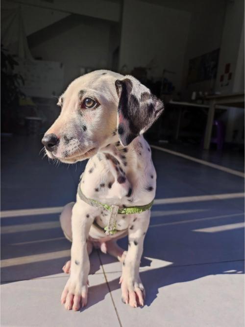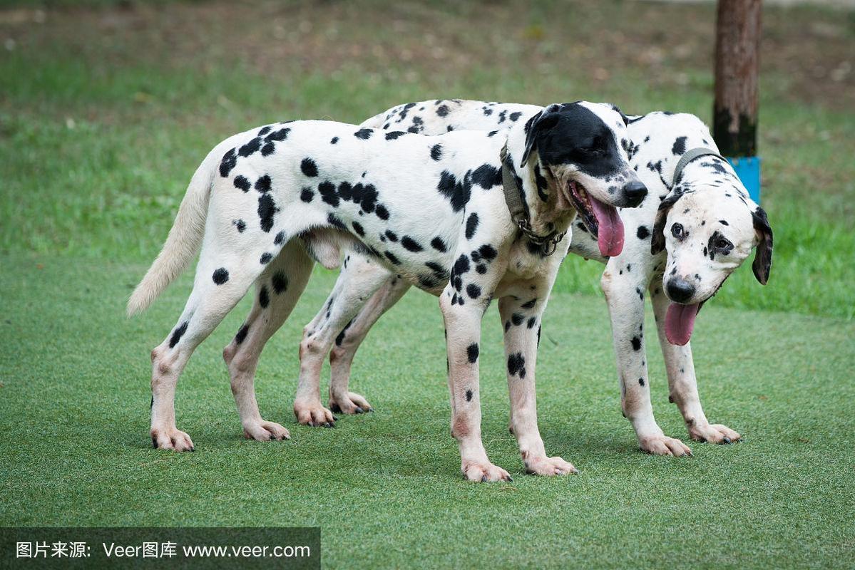 麦町犬(Dalmatian,也叫斑点狗),原产地南斯拉夫。平静而警惕、轮廓匀称、强健、肌肉发达、且活泼,毫不羞怯,表情聪明伶俐,听话易训,感觉敏锐,警戒心强,容易与小孩相处。大麦町犬具有极大的耐力,而且奔跑速度相当快。后躯有力,拥有平滑且清晰的肌肉。大麦町因为拥有出色的奔跑与撕咬能力,所以也经常被用作比赛犬。大麦町犬出生时是白色的,斑点能改变,小狗时身上出现轻微的斑点,随着逐渐长大,斑点也变得明显,并成为特有的标志。