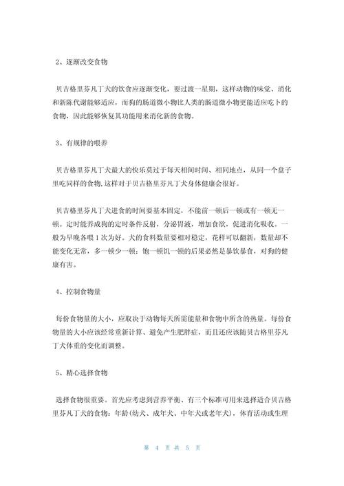 食材的选择也是非常重要的。首先要考虑营养平衡,有三个标准可以用来选择适合贝吉格里芬凡丁犬的食物:年龄(幼犬、成年犬、中年犬或老年犬),体育活动或生理活动的水平(好动犬、运动犬和繁殖犬)以及大小(小型、中型或大型) 。